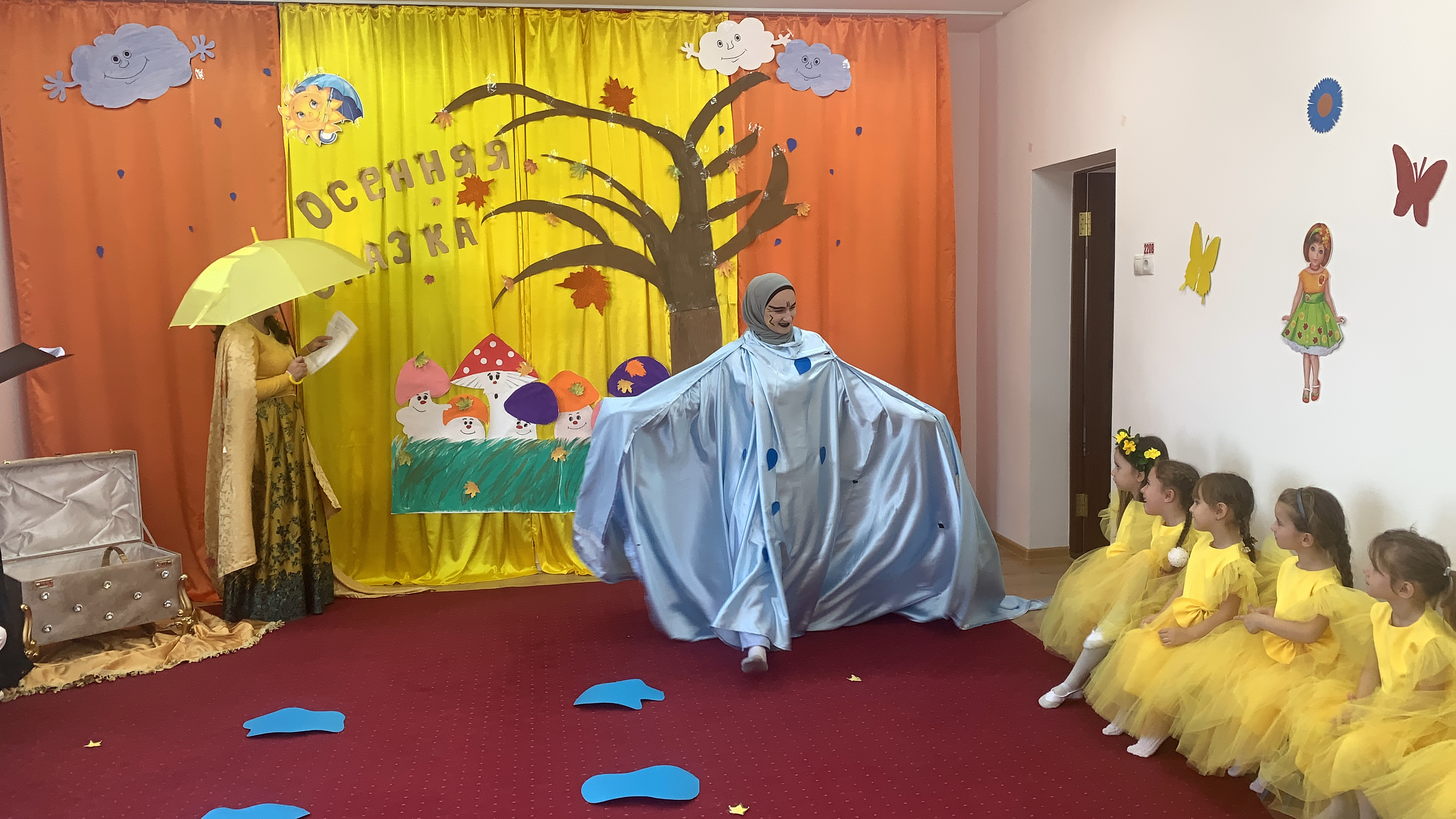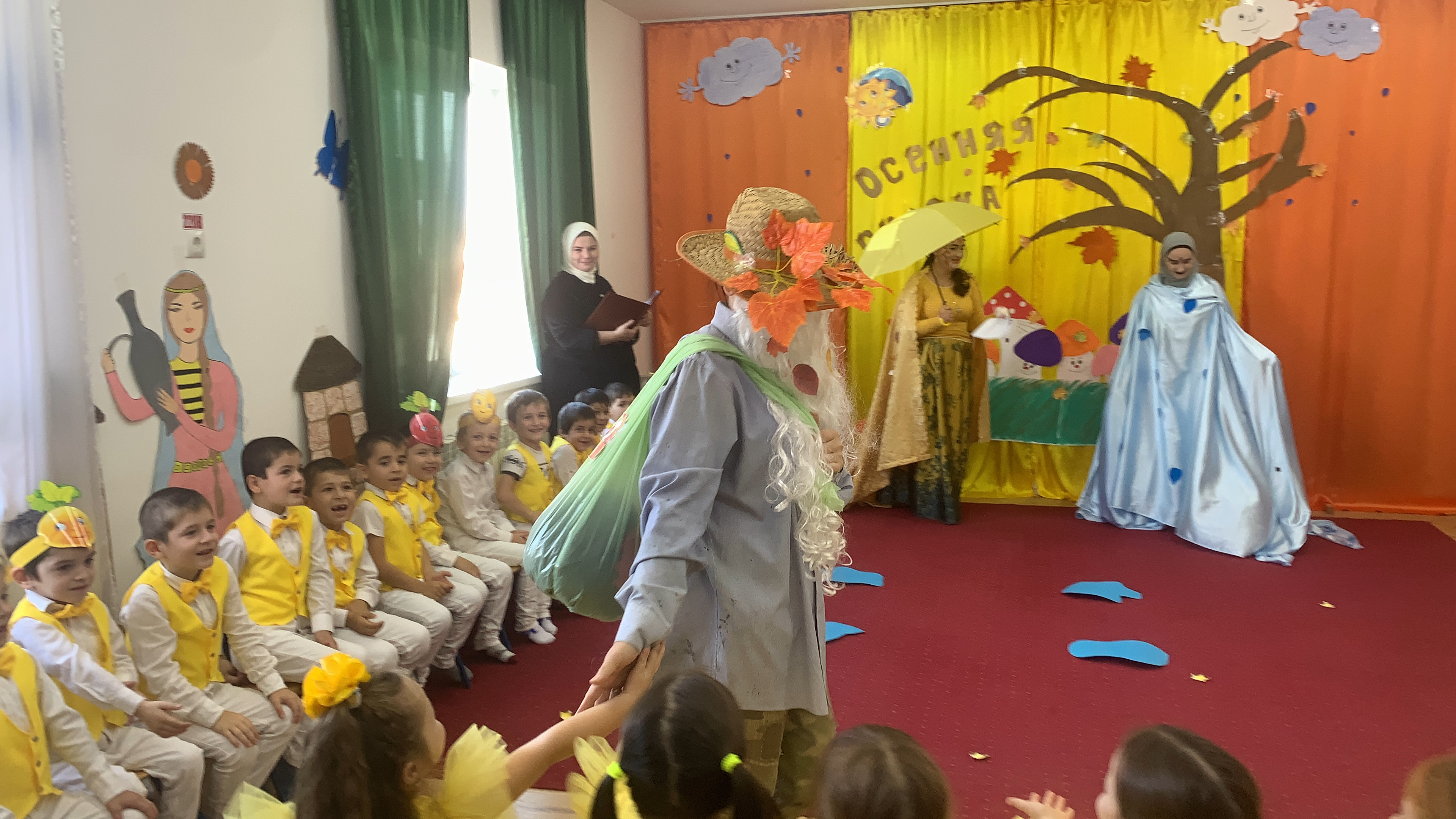 «Осенняя сказка»-Так назывался наш осенний праздник, в котором приняли активное участие дети старшей группы. На дворе слякоть и холодно, а у нас в зале царила теплая, доброжелательная атмосфера. Дети водили хоровод, пели песенки об осени, играли в веселые игры, читали стихи.
